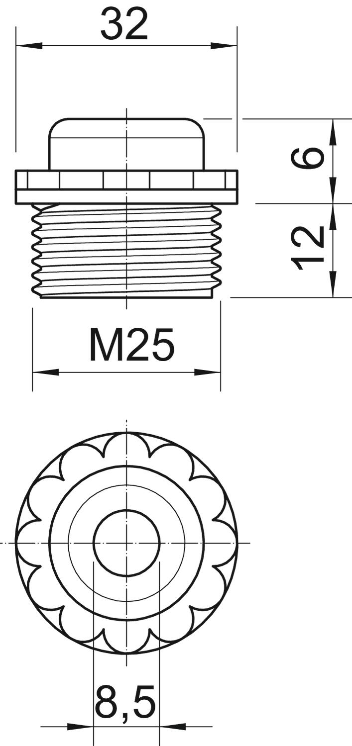 Comprimento da rosca 12 mm Cor cinzento claro; RAL 7035 Dimensão M25 Grau de proteção IP54 Largura da chave 30 Livre de halogéneos sim Material Polietileno Medida D 8,5 mm Medida E 32 mm Medida L1 12 mm Medida L2 6 mm Pegada de CO2 (GWP) do berço ao portão 0,0108 kg CO2e / 1 Peça Tamanho M25 - Todos os tipos