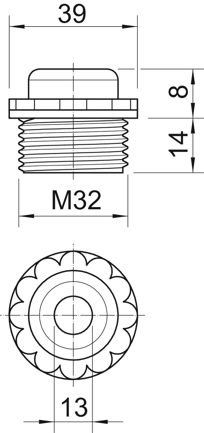 Comprimento da rosca 14 mm Cor cinzento claro; RAL 7035 Dimensão M32 Grau de proteção IP54 Largura da chave 34 Livre de halogéneos sim Material Polietileno Medida D 13 mm Medida E 39 mm Medida L1 14 mm Medida L2 8 mm Pegada de CO2 (GWP) do berço ao portão 0,0209 kg CO2e / 1 Peça Tamanho M32 - Todos os tipos