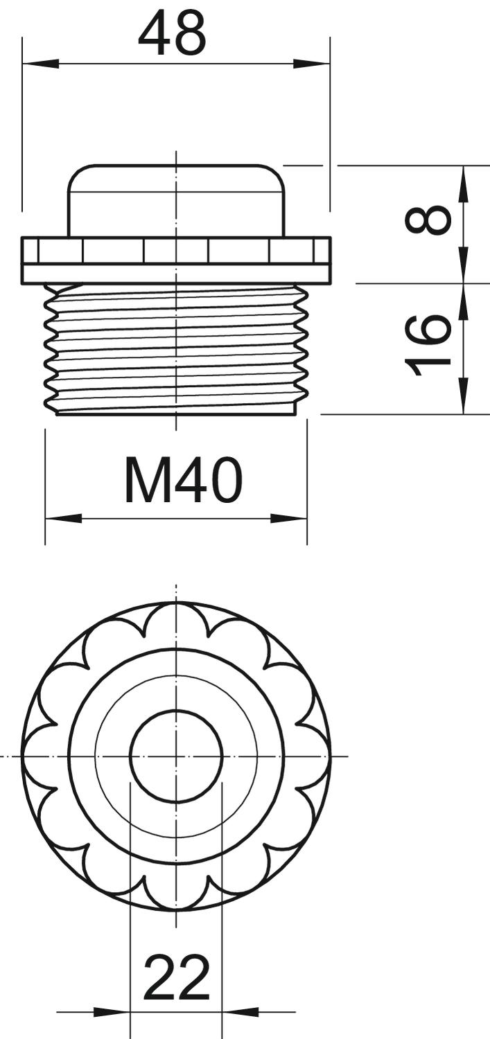 Comprimento da rosca 16 mm Cor cinzento claro; RAL 7035 Dimensão M40 Grau de proteção IP54 Largura da chave 44 Livre de halogéneos sim Material Polietileno Medida D 22 mm Medida E 48 mm Medida L1 16 mm Medida L2 8 mm Pegada de CO2 (GWP) do berço ao portão 0,0347 kg CO2e / 1 Peça Tamanho M40 - Todos os tipos