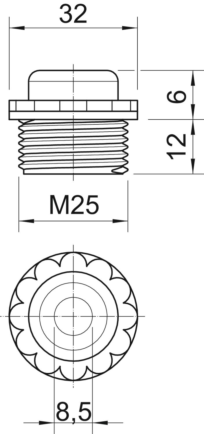 Comprimento da rosca 12 mm Cor cinzento claro; RAL 7035 Dimensão M25 Grau de proteção IP54 Largura da chave 30 Livre de halogéneos sim Material Polietileno Medida D 8,5 mm Medida E 32 mm Medida L1 12 mm Medida L2 6 mm Pegada de CO2 (GWP) do berço ao portão 0,011 kg CO2e / 1 Peça Tamanho M25 - Todos os tipos