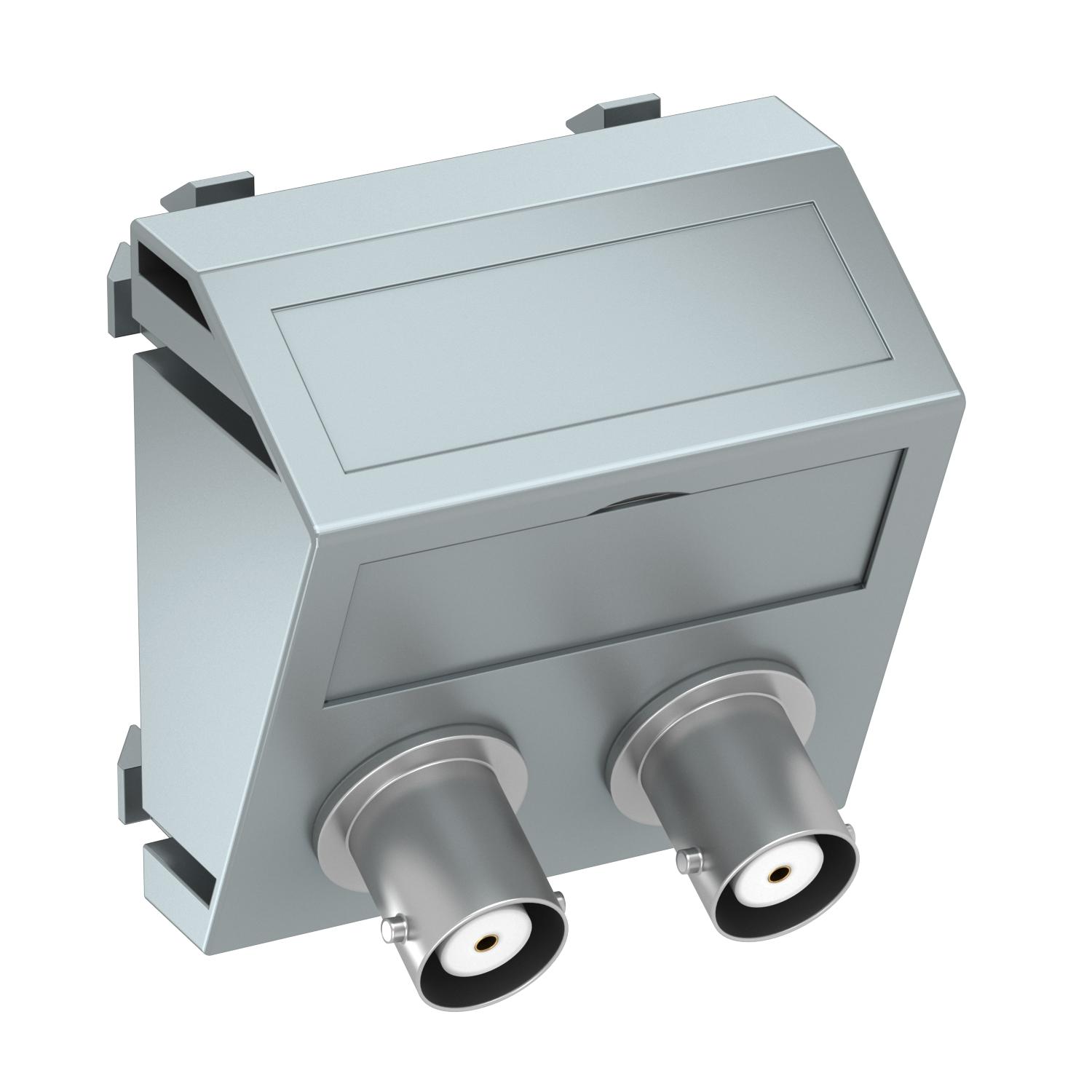Descrição do produtoSuporte multimédia com três tomadas de ligação BNC, saída de cabo inclinada, com campo de inscrição, dois acoplamentos BNC na versão tomada-tomada. Placa de suporte com fixação por encaixe, adequada para a montagem horizontal e vertical em todo o sistema.