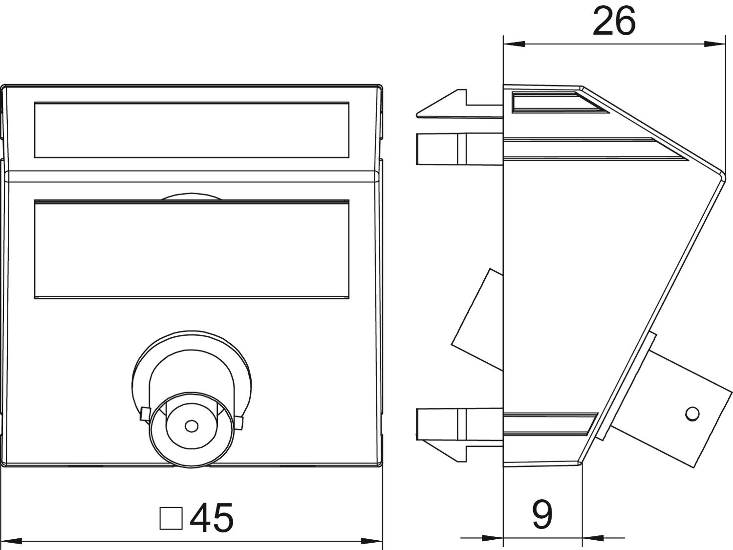 Descrição do produtoSuporte multimédia com uma tomada de ligação BNC, saída de cabo inclinada, com campo de inscrição, acoplamento BNC na versão tomada-tomada. Placa de suporte com fixação por encaixe, adequada para a montagem horizontal e vertical em todo o sistema.