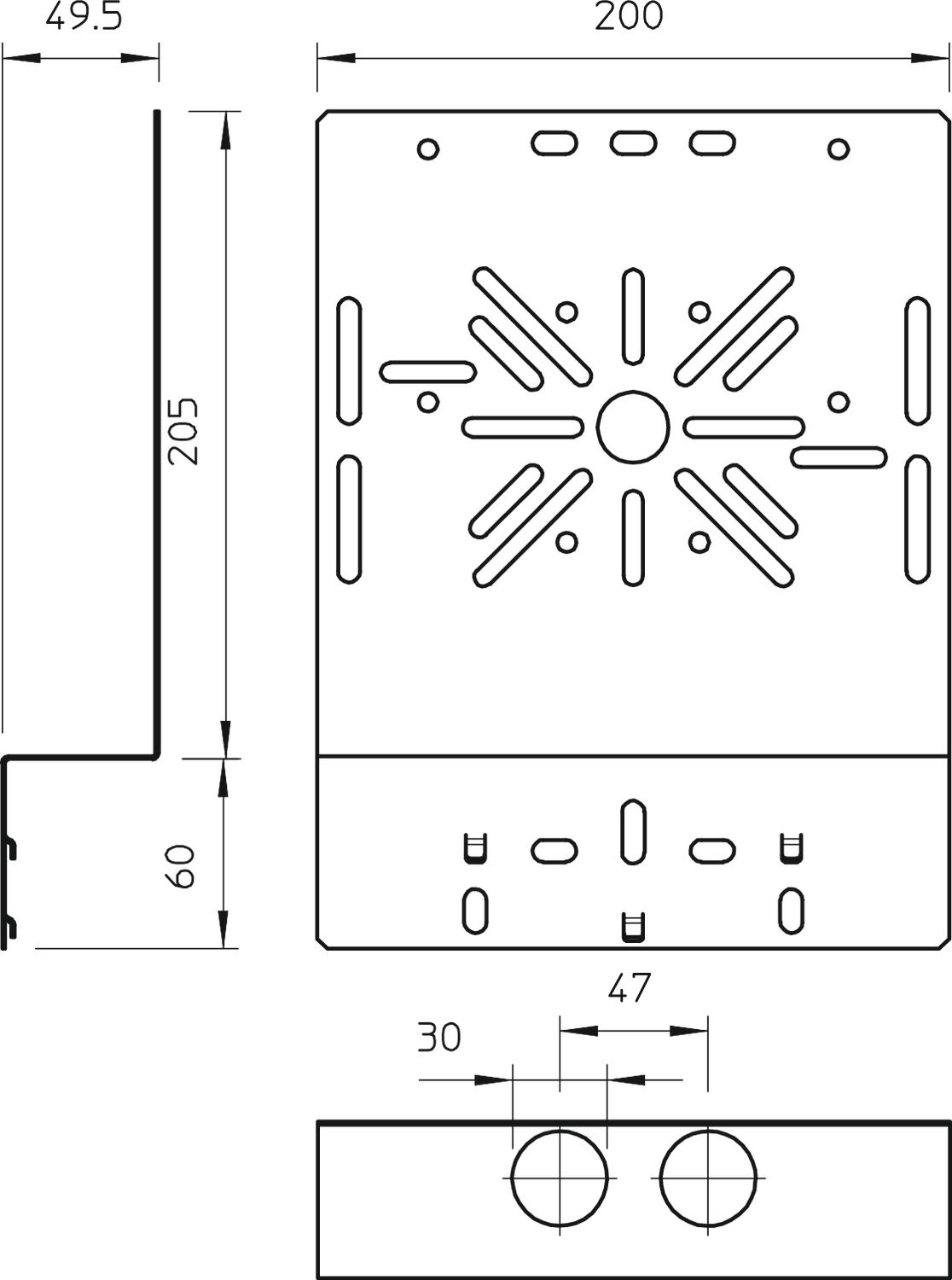 Descrição do produtoSuporte de montagem angular para fixação na aba do caminho de cabos em chapa.
