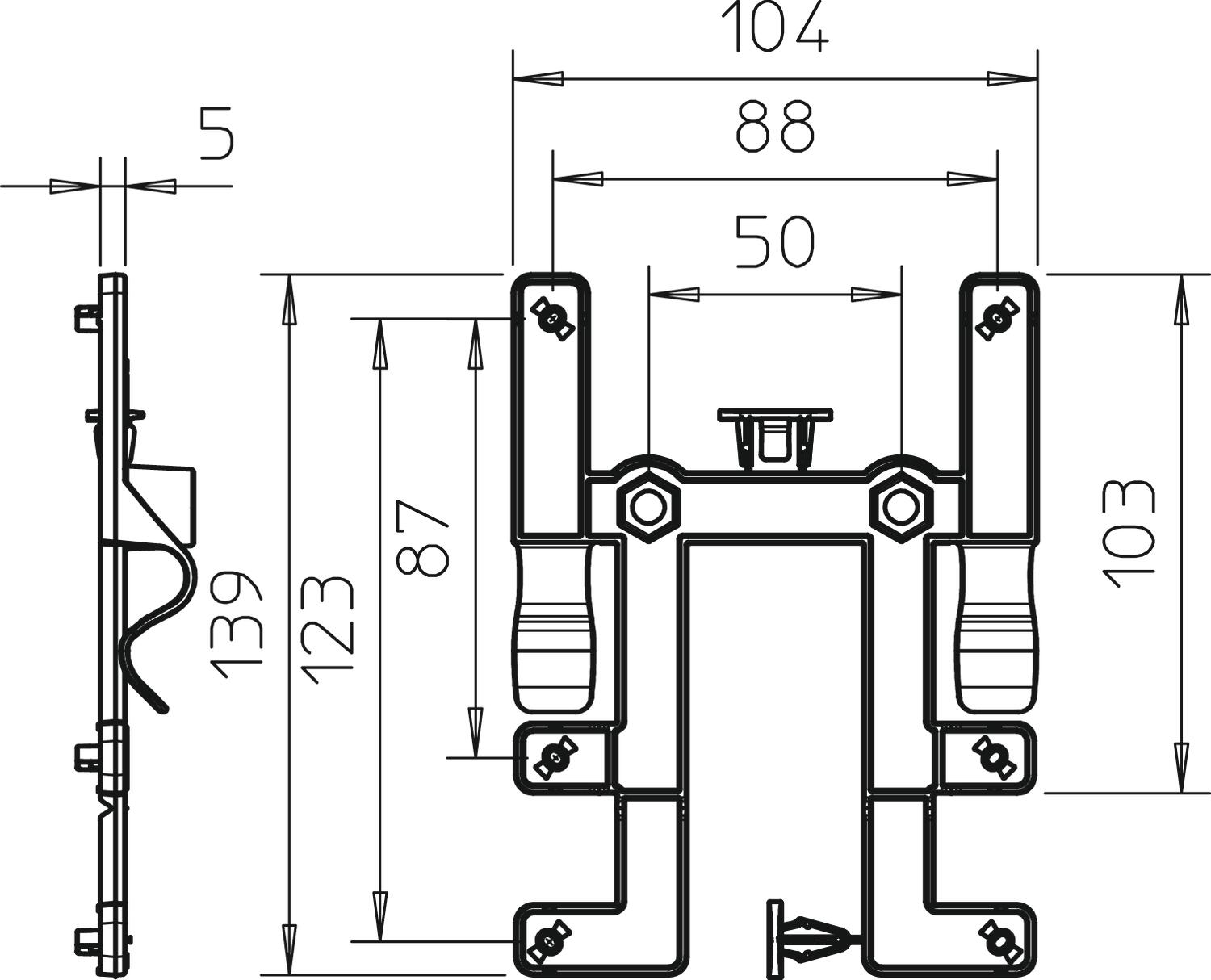 Descrição do produtoElemento de fixação para caixas de derivação (T60 e T100), para montagem sem ferramentas em caminhos de cabos em chapa. Caixas de derivação montáveis horizontal ou verticalmente em ambos os lados.