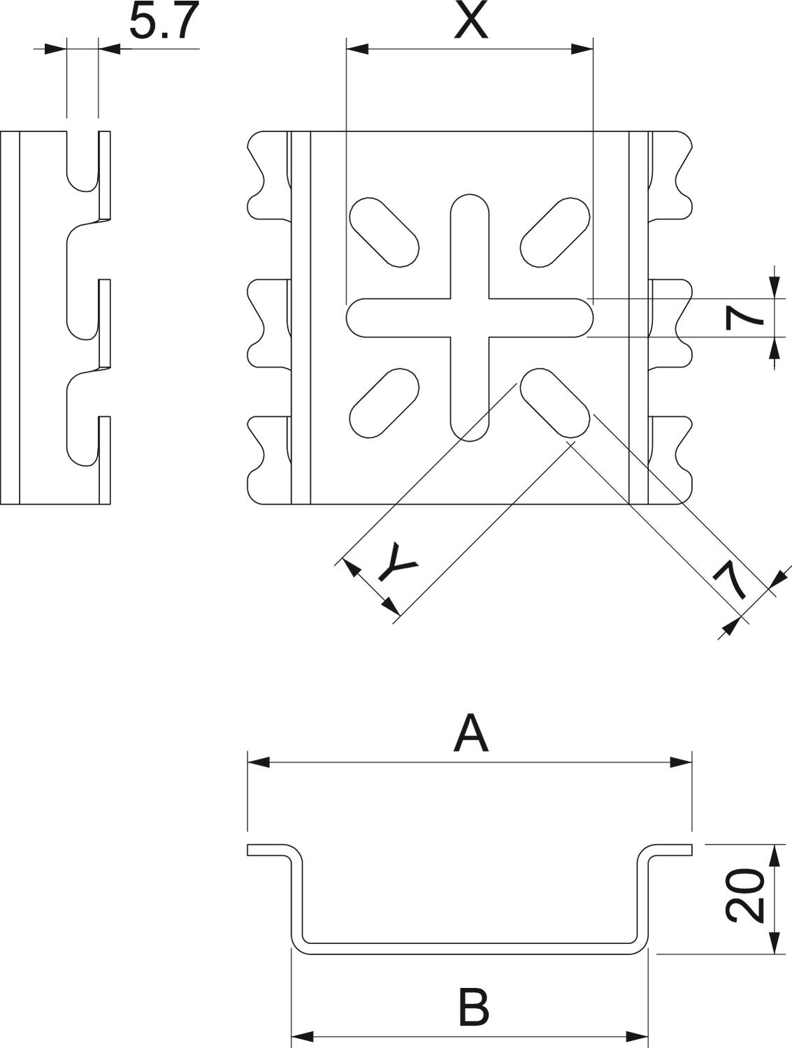 Descrição do produtoSuporte para caixas de derivação para fixação, sem parafusos, em caminhos de cabos em varão.