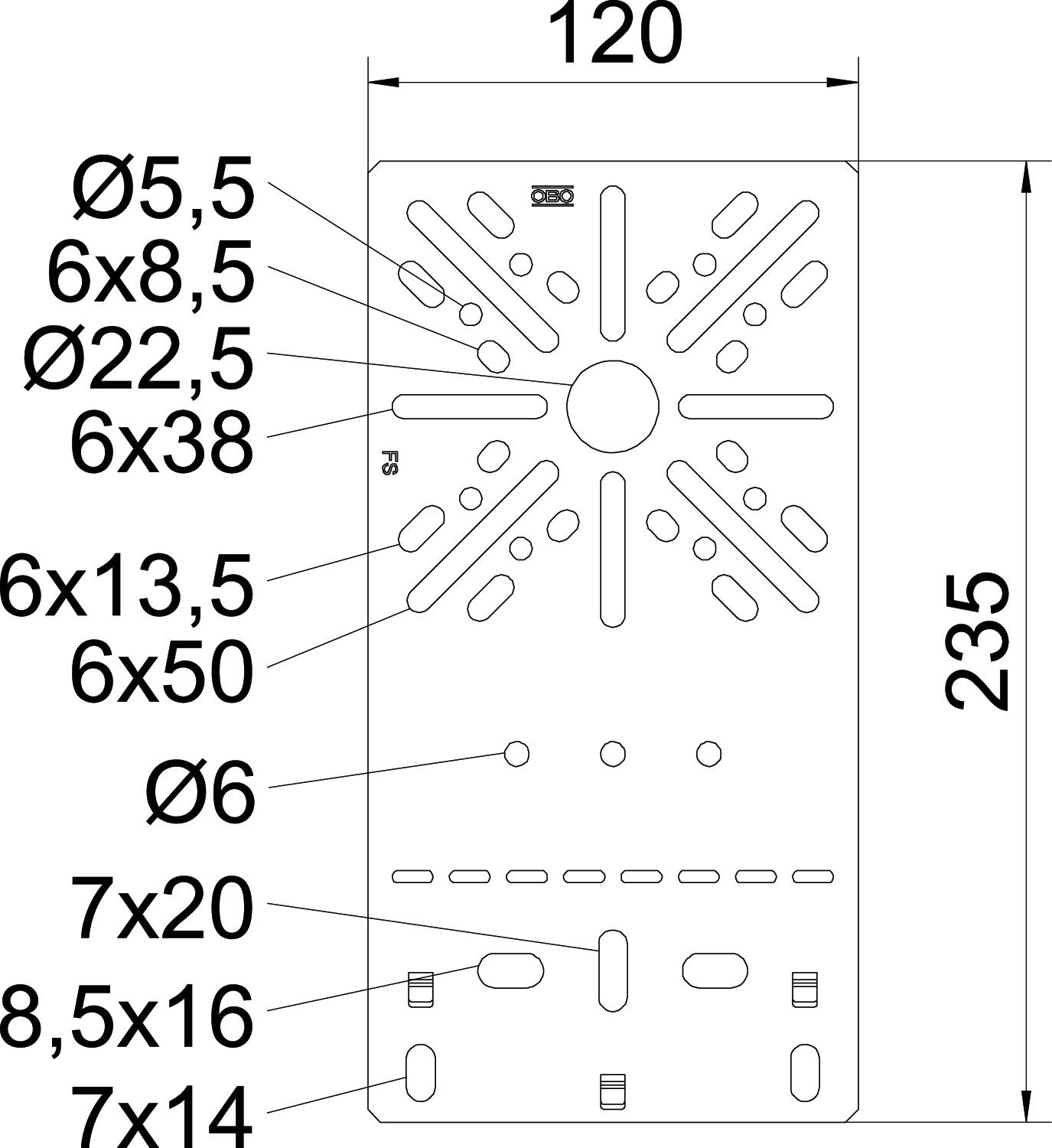 Descrição do produtoSuporte de montagem plano para fixação na aba do caminho de cabos em chapa.