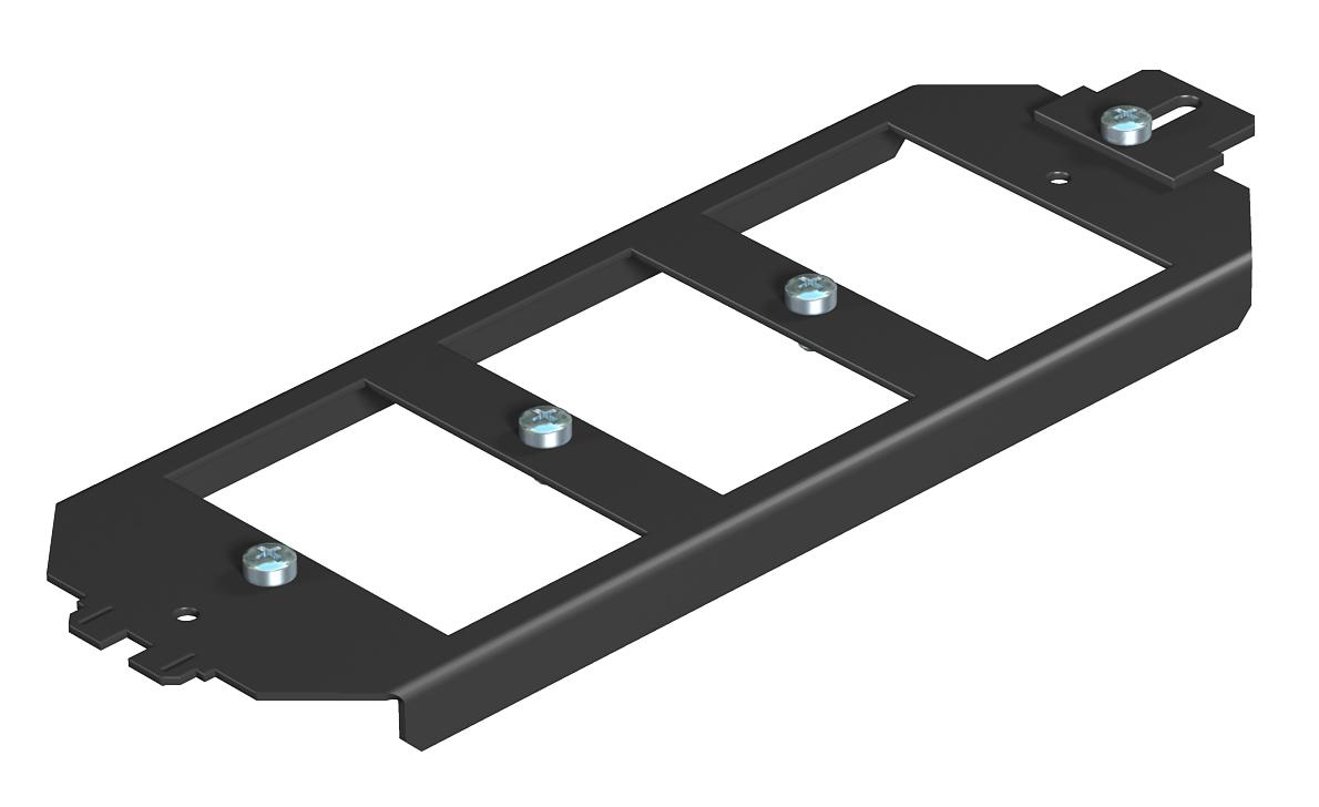 Descrição do produtoSuporte de montagem para instalação de 3 platines e um fixador de alívio de tensão. Utilização em vez de um suporte de aparelhos UT4.