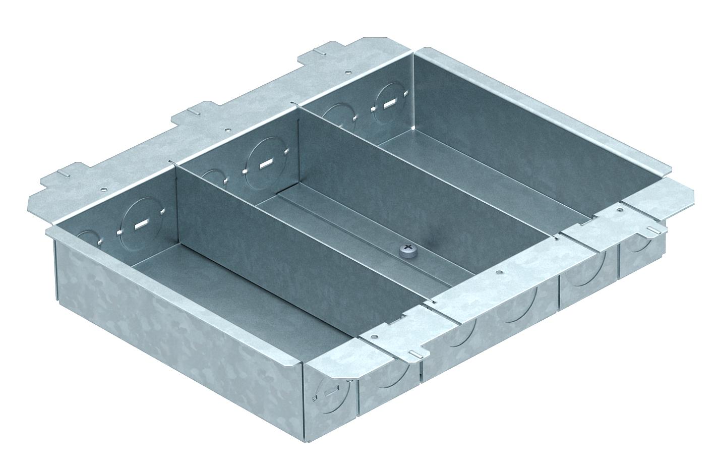 Descrição do produtoSuporte de montagem para 3 placas de suporte APMT5. O suporte de montagem é fixo por baixo da tampa de encastramento GES9DB. Cada com 6 aberturas M20 e M25 quebráveis para montagem de tubos flexíveis de instalação.