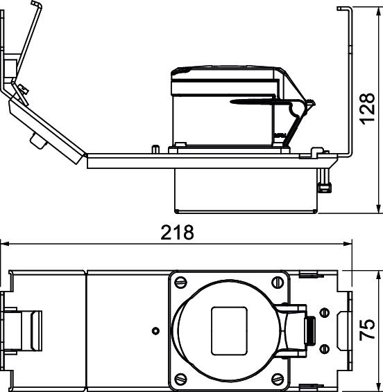 Descrição do produtoSuporte de aparelhos de tamanho nominal 3, com uma tomada CEE de 16 A para montagem em tampas e caixas de tamanho nominal R7, 9 e R9. Suporte de aparelhos com base de proteção e fixadores de alívio de tensão. Profundidade mínima necessária de montagem: 190 mm com a utilização de uma ficha reta e 160 mm na utilização de uma ficha de tomada angular.