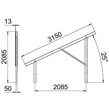 Adequado para material de telhado Outros Altura 2085 mm Altura do módulo máx. 50 mm Altura do módulo mín. 20 mm Ancoragem Independente Ângulo de inclinação máx. 25 ° Ângulo de inclinação mín. 25 ° Canal de cabos integrado não Canal de cabos opcional sim Comprimento 2898 mm Cor zinco Dimensão 2898x91x2085 Direção vertical Esquadro α 25 Largura 91 mm Largura do módulo máx. 1310 mm Largura do módulo mín. 990 mm Material Aço Medida H 2,08 mm Medida L 2,9 mm Medida l 2,08 mm Module length max. 2100 mm Module length min. 1850 mm Necessidade de penetração no telhado não Pegada de CO2 (GWP) do berço ao portão 78,83 kg CO2e / 1 Peça Regulável não Superfície Galvanizado por imersão a quente após maquinação Tipo de montagem Sistema de montagem fotovoltaica Chão - Todos os tipos