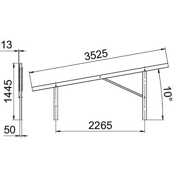 Adequado para material de telhado Outros Altura 1445 mm Altura do módulo máx. 50 mm Altura do módulo mín. 20 mm Ancoragem Independente Ângulo de inclinação máx. 10 ° Ângulo de inclinação mín. 10 ° Canal de cabos integrado não Canal de cabos opcional sim Comprimento 3489 mm Cor zinco Dimensão 3489x91x1445 Direção vertical Esquadro α 10 Largura 91 mm Largura do módulo máx. 1310 mm Largura do módulo mín. 990 mm Material Aço Medida H 1,45 mm Medida L 3,49 mm Medida l 2,27 mm Module length max. 2400 mm Module length min. 2100 mm Necessidade de penetração no telhado não Pegada de CO2 (GWP) do berço ao portão 77,357 kg CO2e / 1 Peça Regulável não Superfície Galvanizado por imersão a quente após maquinação Tipo de montagem Sistema de montagem fotovoltaica Chão - Todos os tipos