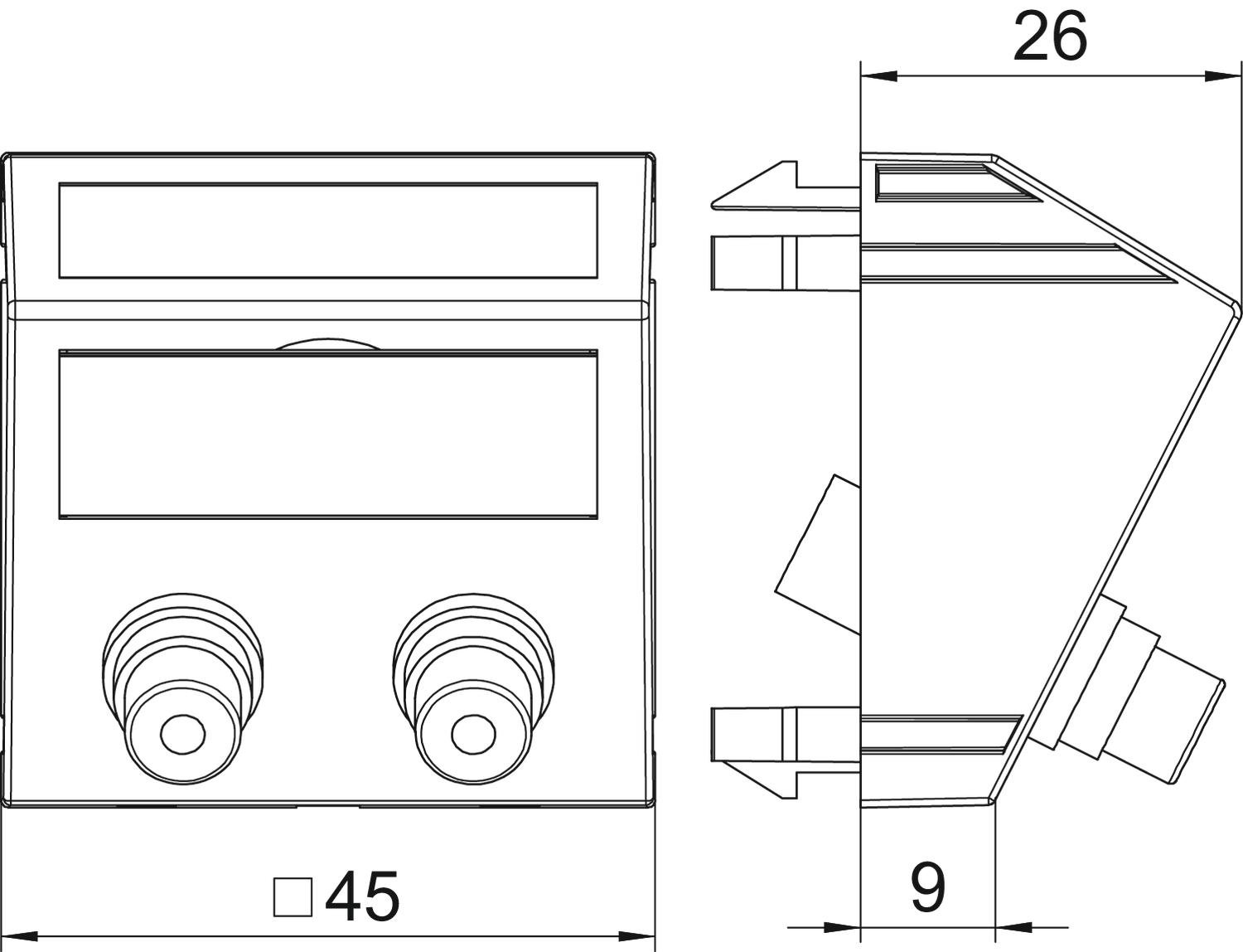 Descrição do produtoSuporte de multimédia com duas tomadas de ligação RCA para áudio D/E, saída de cabo inclinada, com campo de inscrição, dois acoplamentos RCA na versão tomada-tomada, codificação a cores em vermelho/branco. Espelho com fixação por encaixe, adequado para a montagem horizontal e vertical em todo o sistema.