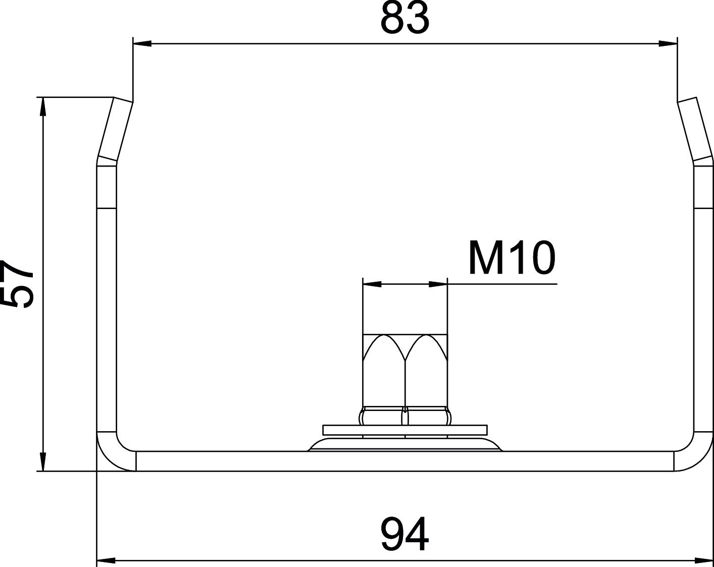 Descrição do produtoSuspensão central para caminhos de cabos em chapa com aba revirada e uma altura lateral de 60 mm.