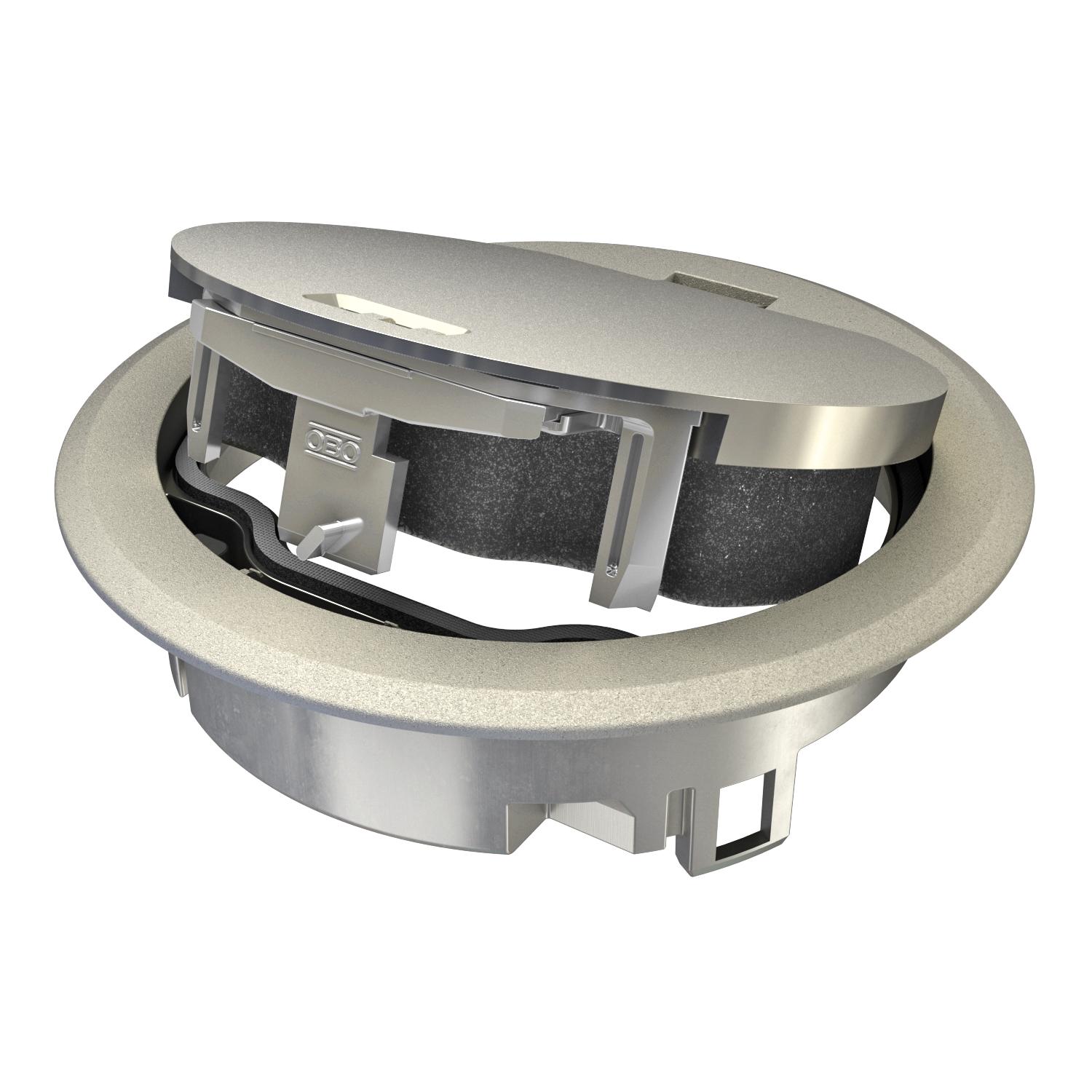 Descrição do produtoTampa basculante com saída de cabos, GES R2, para instalação direta no suporte de aparelhos MT R2 em áreas interiores.