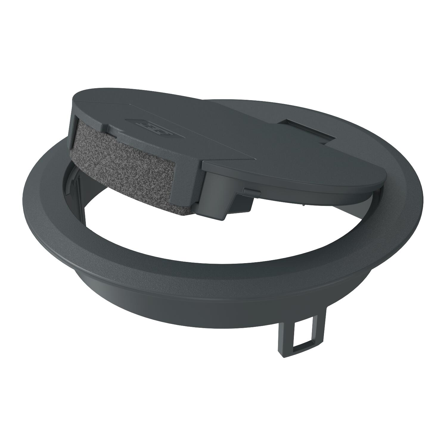 Descrição do produtoTampa articulada com saída de cabos, GES R2, para instalação direta no suporte de aparelhos MT R2.