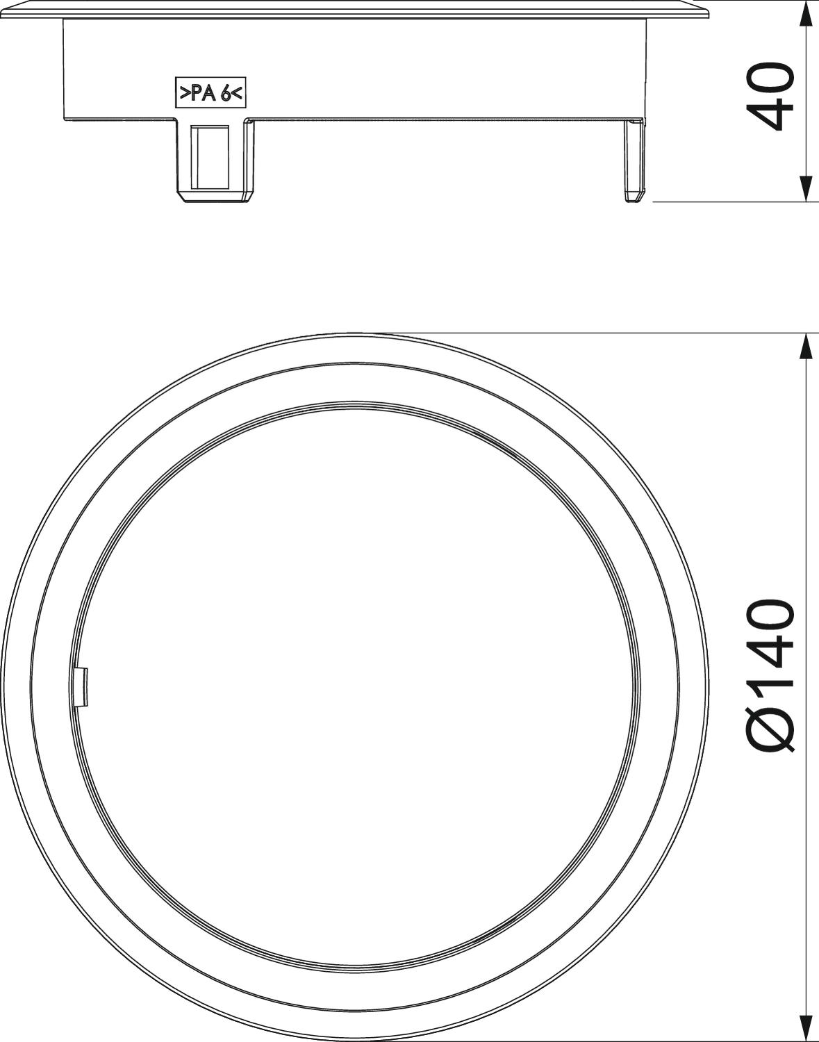 Apropriado para calha de instalação no pavimento não Apropriado para instalação de pavimento côncavo sim Apropriado para instalação em chão falso sim Apropriado para tratamento a húmido não Carga vertical, pequena área até 500 N Com espaço para revestimento do pavimento não Cor preto; RAL 9011 Diâmetro exterior 140 mm Dimensão 140x140x40 Estrutura de proteção do pavimento sim Grau de proteção (IP), em não utilização IP40 Grau de proteção código IK IK10 Material Poliamida Mecanismo de abertura Ferramenta Norma EN 50085-2-2 Pegada de CO2 (GWP) do berço ao portão 0,4053 kg CO2e / 1 Peça Permissões VDE Tratamento do pavimento seco Versão redondo Versão da saída de cabos Sem saída de cabo - Todos os tipos