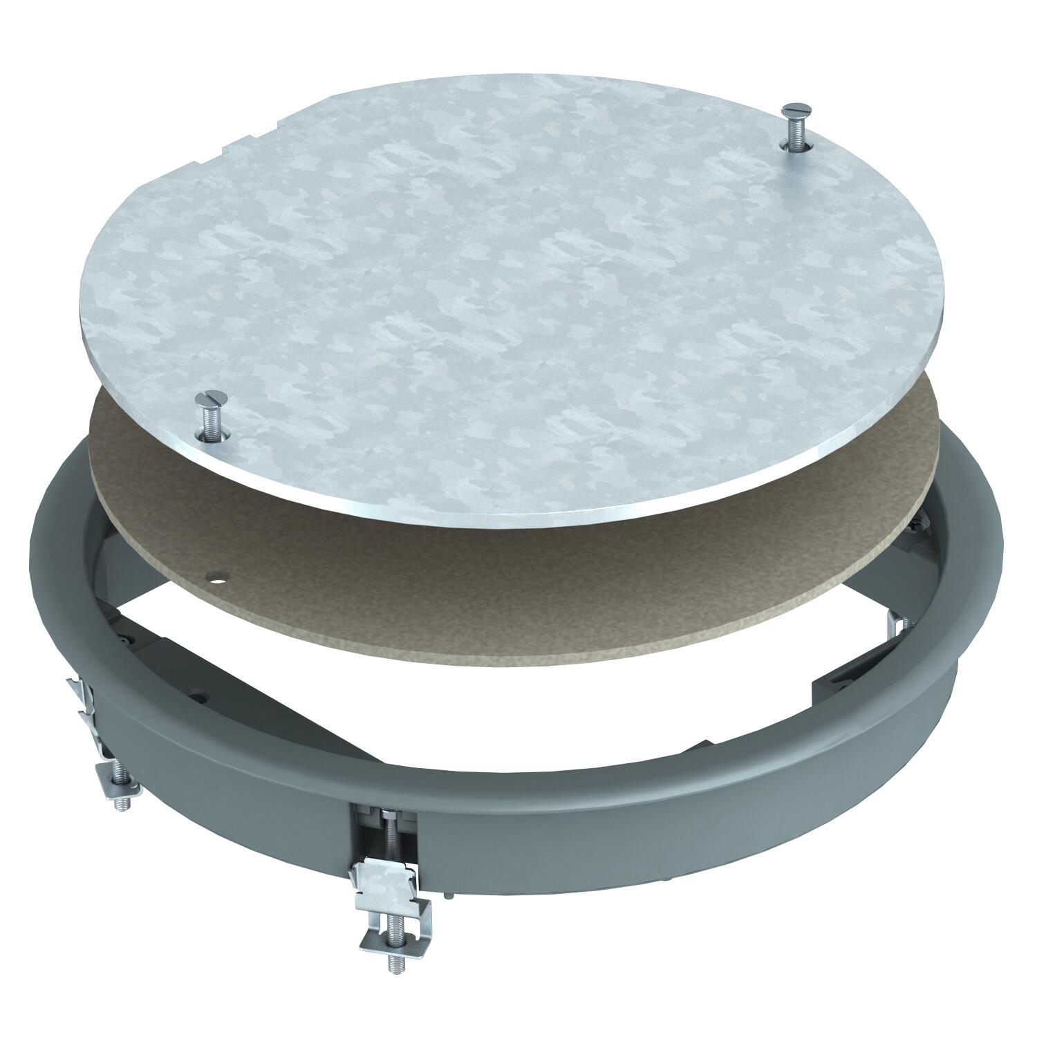 Descrição do produtoTampa cega com abertura de montagem redonda de tamanho nominal R4, utilização em sistemas de chão e calhas de pavimentos em interiores.