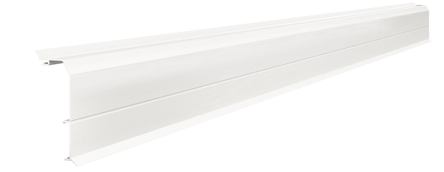 Para encaixe na base das calhas. Com rebordo de proteção para proteger da humidade e para compensar pequenos desníveis de parede.