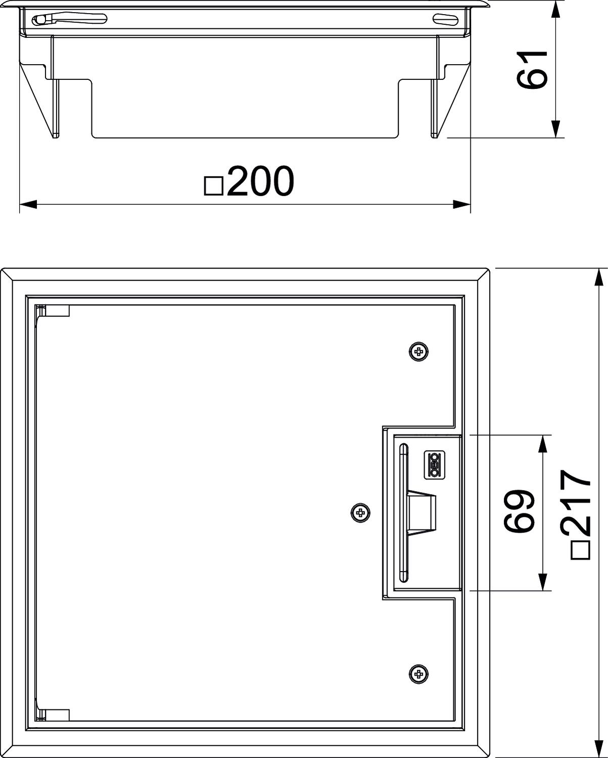 Descrição do produtoTampa de encastramento com pega para até 6 aparelhos Modul 45 em 2 suportes universais UT3, utilização em sistemas de chão e calhas de pavimento em interiores.