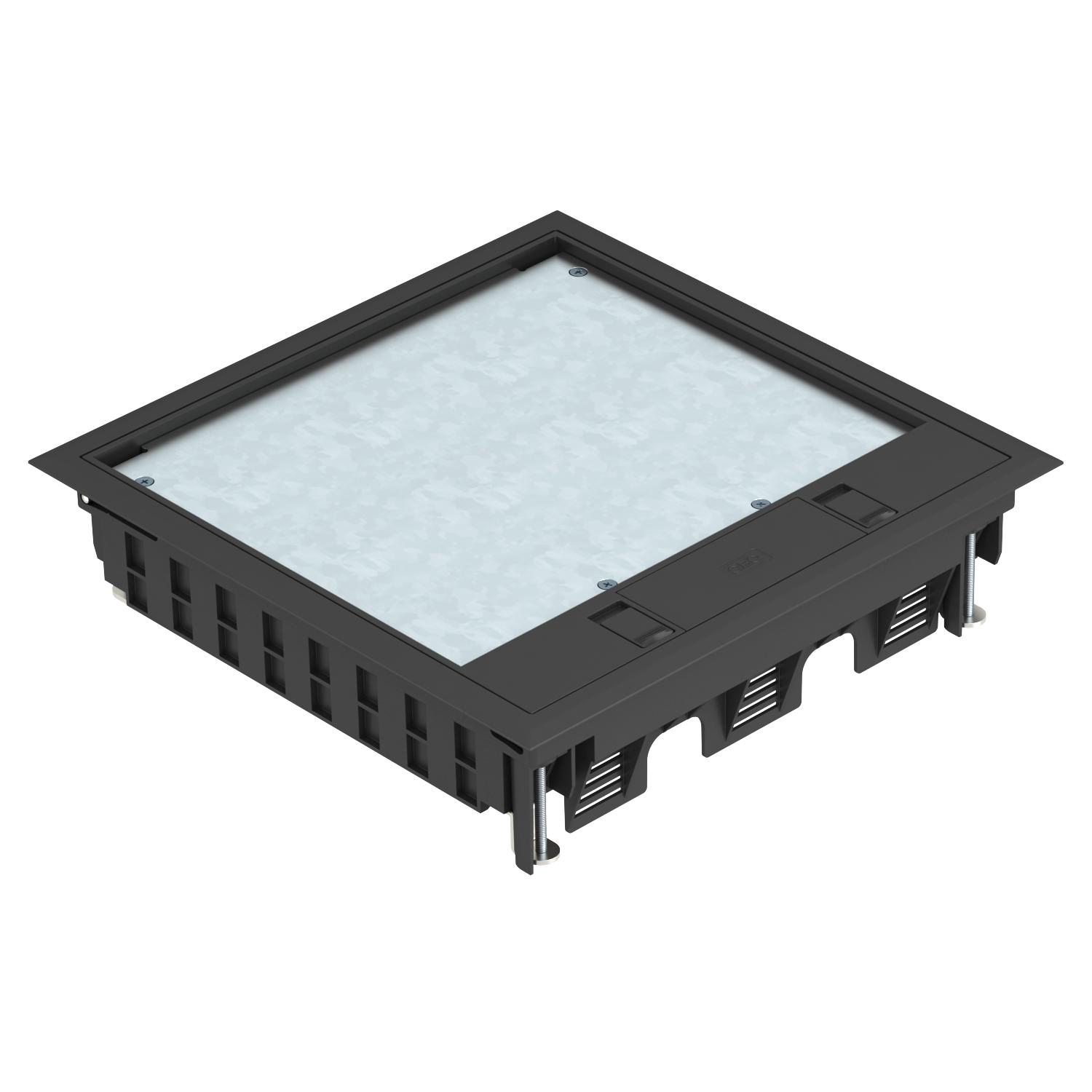 Descrição do produtoTampa de encastramento com corrediça de encaixe para até 12 aparelhos Modul 45 em 3 suportes universais UT4, utilização em sistemas de calhas de pavimento e chão falso em interiores.