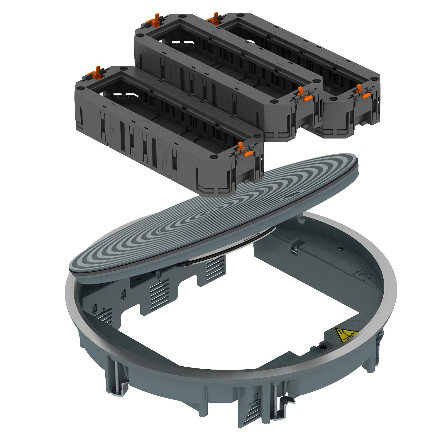 - Três suportes universais UT4/45 para quatro aparelhagens Modul 45® cada.