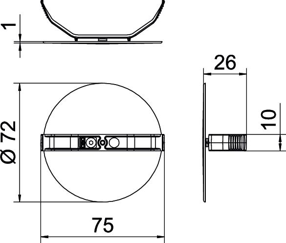 Altura 1 mm Cor branco Diâmetro 72 mm Dimensão Ø72 Forma redondo Livre de halogéneos sim Material Poliestireno Pegada de CO2 (GWP) do berço ao portão 0,0213 kg CO2e / 1 Peça resistência ao fio incandescente conforme a VDE 0471/IEC 60695-2-11, temperatura de ensaio 650°C Tipo de fixação Tampa de mola - Todos os tipos
