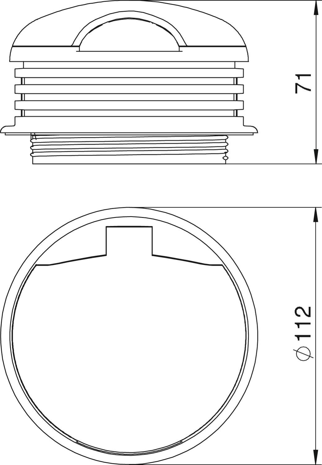 Descrição do produtoTampa de proteção para utilização em caixa de pavimento UDL2-80 e saídas de chão para a saída de cabos com proteção, pavimentos limpos de modo húmido em área interior, com anel de nervuras reforçadas em poliamida e vedação em borracha para perfis.
