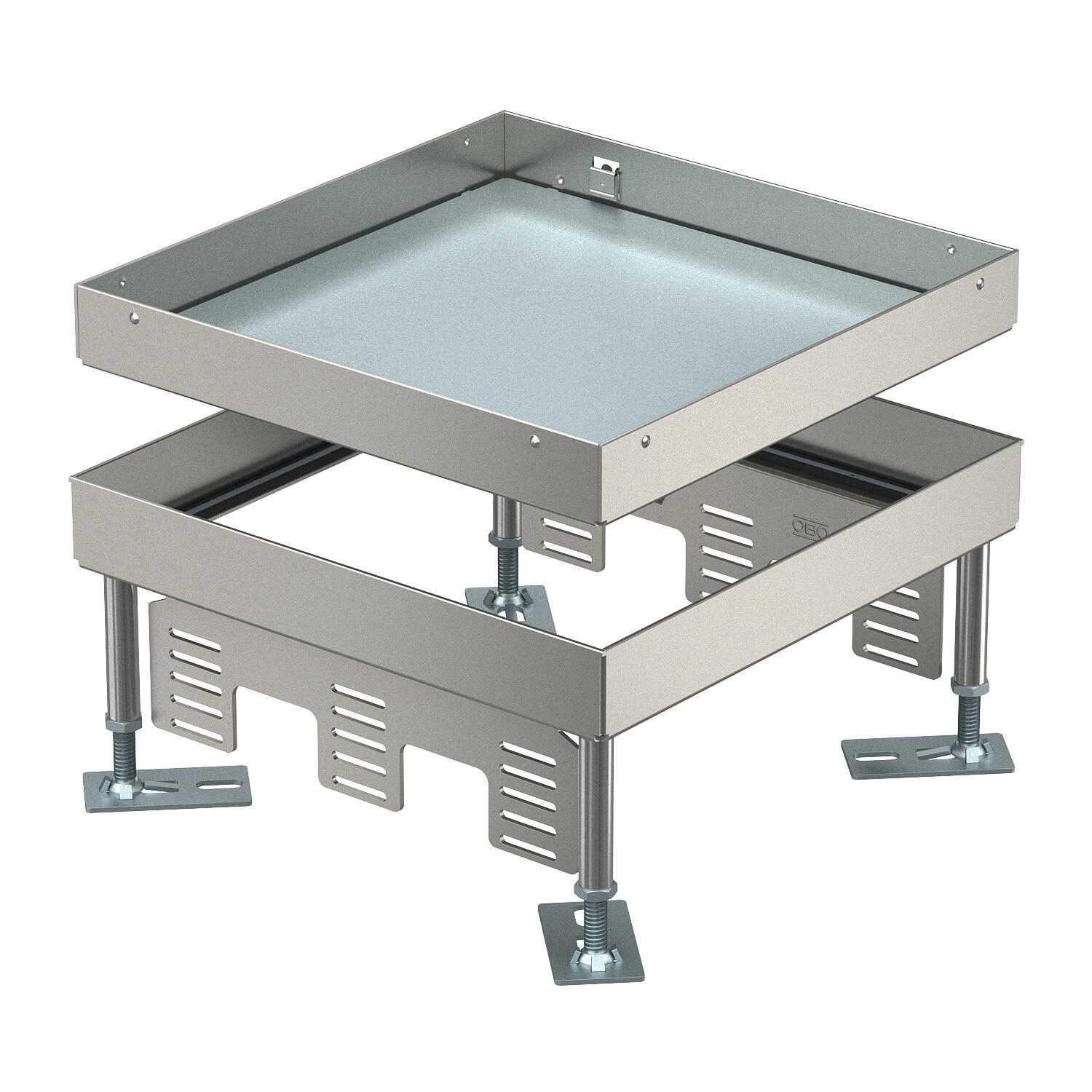 Descrição do produtoTampa quadrada nivelável "cega" para a criação de uma abertura de inspeção de tamanho nominal 9. Montagem em sistemas de calhas, chãos falsos, em pavimentos tratados a seco ou a húmido em interiores. Apenas adequada para pavimentos lisos.