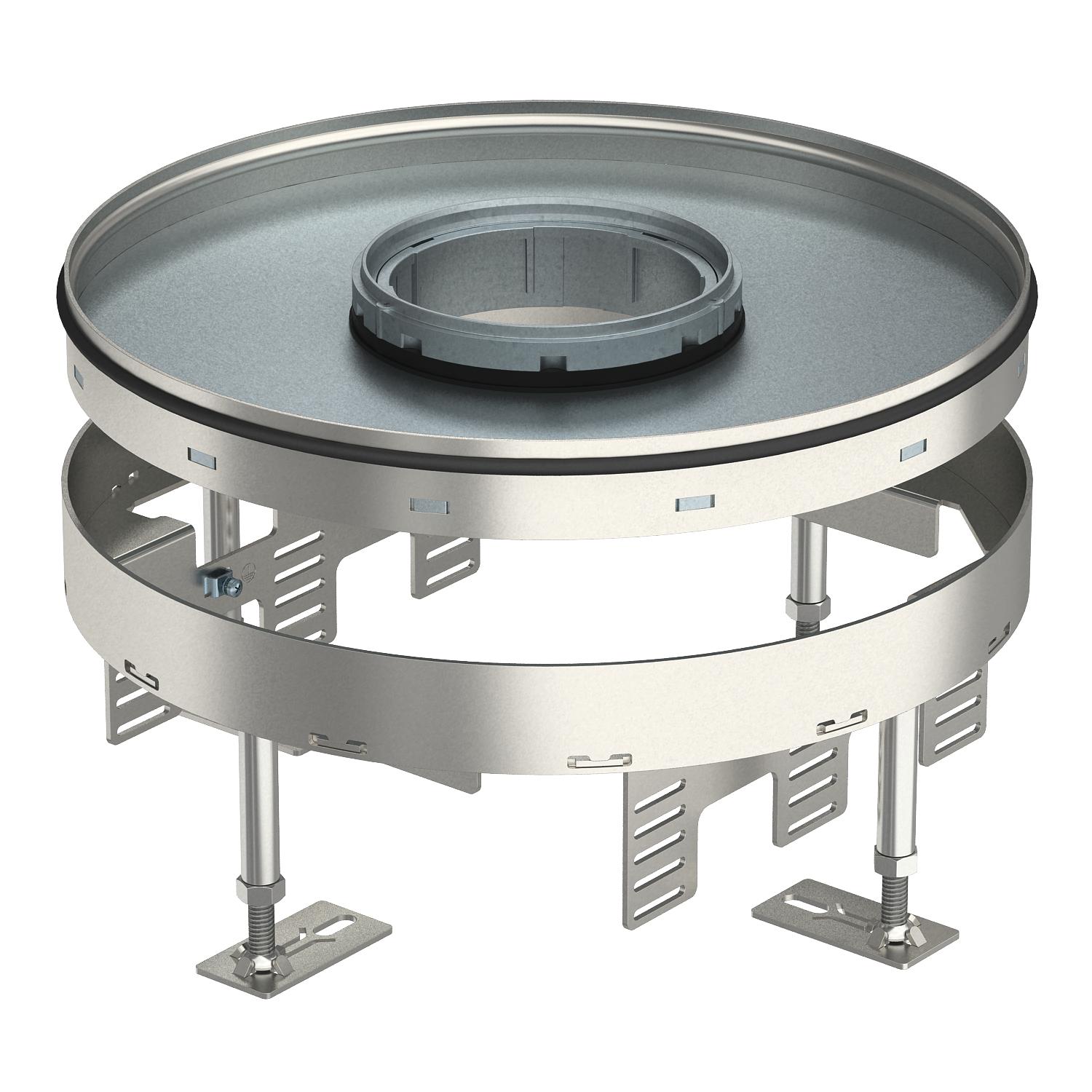 Descrição do produtoTampa redonda para grandes cargas para tubo periscópio no tamanho nominal R9 para a montagem de aparelhos de instalação em sistemas de calhas de pavimento, chão falso, em pavimentos tratados a seco ou a húmido em interiores Classe de carga 2 a 20 kN.