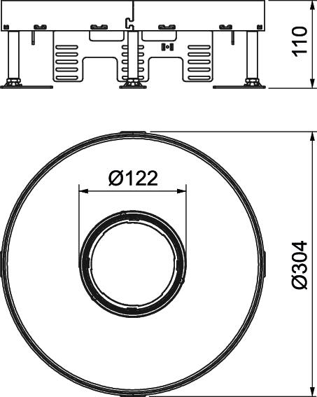 Descrição do produtoCaixa nivelável de tamanho nominal R9 para tubo periscópio, para montagem de aparelhos de instalação em pavimentos tratados a seco ou a húmido em interiores.