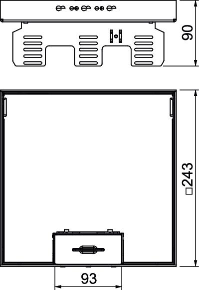Tampa nivelável e desacoplada do pavimento de tamanho nominal 9, com saída de cabos, para a montagem de aparelhos de instalação em pavimentos tratados a seco em interiores, para montagem em caixas de pavimento UZD250 ou UZD350, em cada caso em conjunto com um aro de redução DUG../9. A montagem é efetuada através de niveladores (encomendar separadamente) no perfil da estrutura de alumínio das caixas de pavimento.