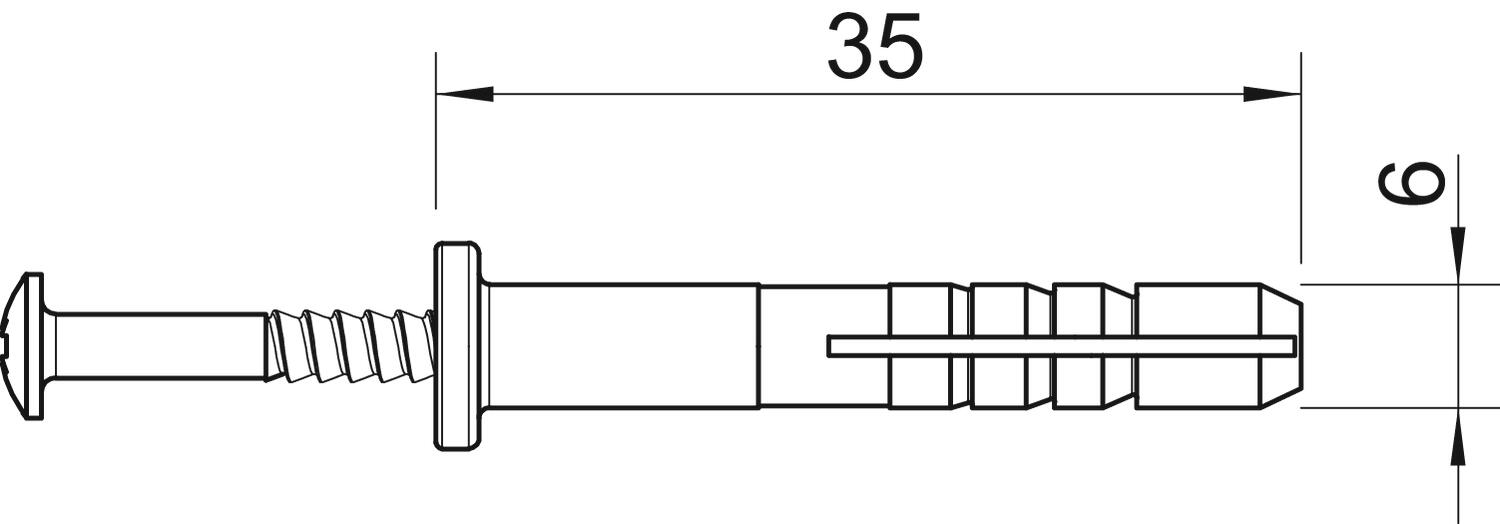 Com parafusos sim Comprimento 35 mm Cor cinzento claro Diâmetro 6 mm Dimensão 6x35mm Força de extração 260 N Livre de halogéneos sim Material Poliamida Parafusos Pozidriv PZ Profundidade do furo 40 mm - Todos os tipos