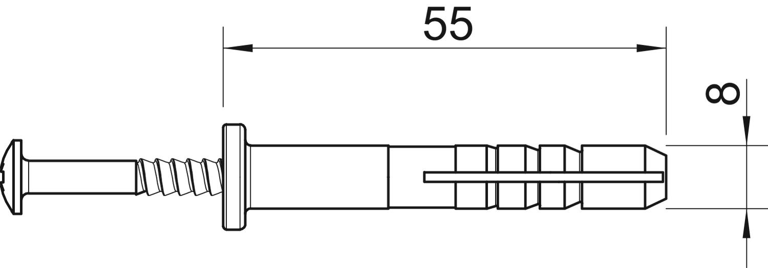 Com parafusos sim Comprimento 55 mm Cor cinzento claro Diâmetro 8 mm Dimensão 8x55mm Força de extração 350 N Livre de halogéneos sim Material Poliamida Parafusos Pozidriv PZ Profundidade do furo 60 mm - Todos os tipos