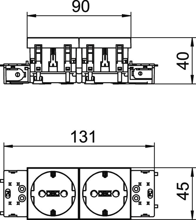 Para a instalação em calhas Rapid 45, calhas de montagem de aparelhos, colunas de instalação, sistemas de chão e Deskboxes.