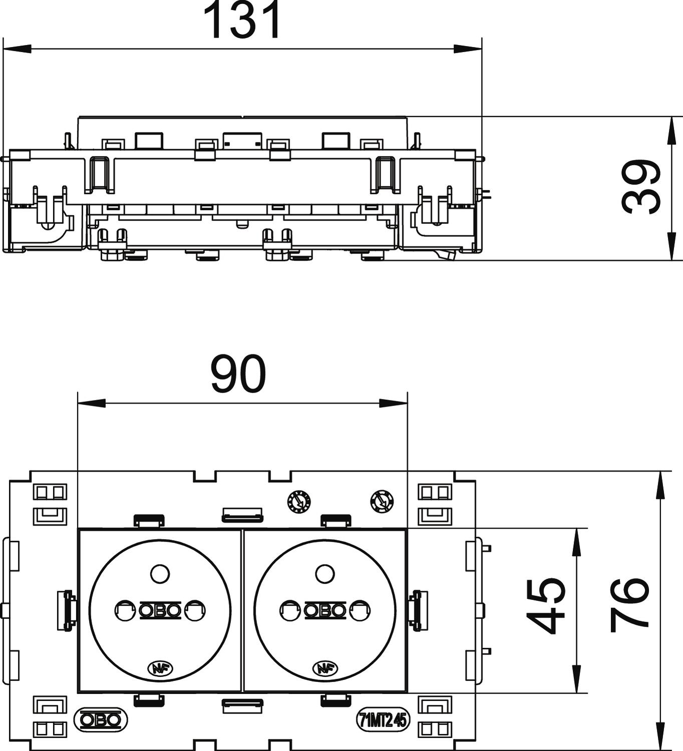 Para a instalação em calhas Rapid 45, calhas de montagem de aparelhos, colunas de distribuição, sistemas de chão e Deskbox.