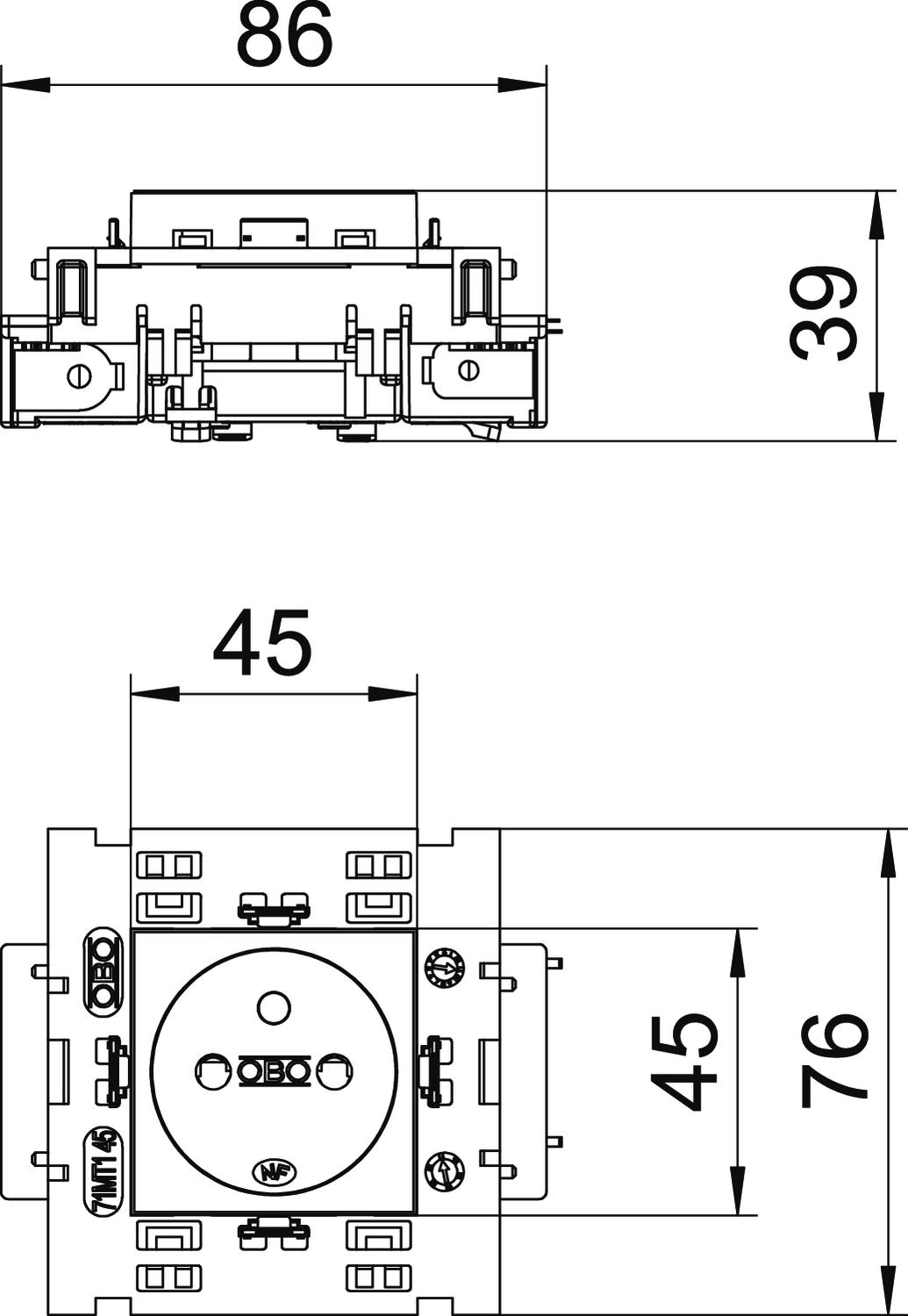 Descrição do produtoTomada com pino de terra e ligação lateral, 1 módulo 0°, com proteção elevada contra contacto acidental, com ligadores rápidos, 2 polos, 16 A, 250 V~, com bornes de ligação conforme IEC 60884-1, indicada para a montagem em sistemas de calhas técnicas Rapid 80.
