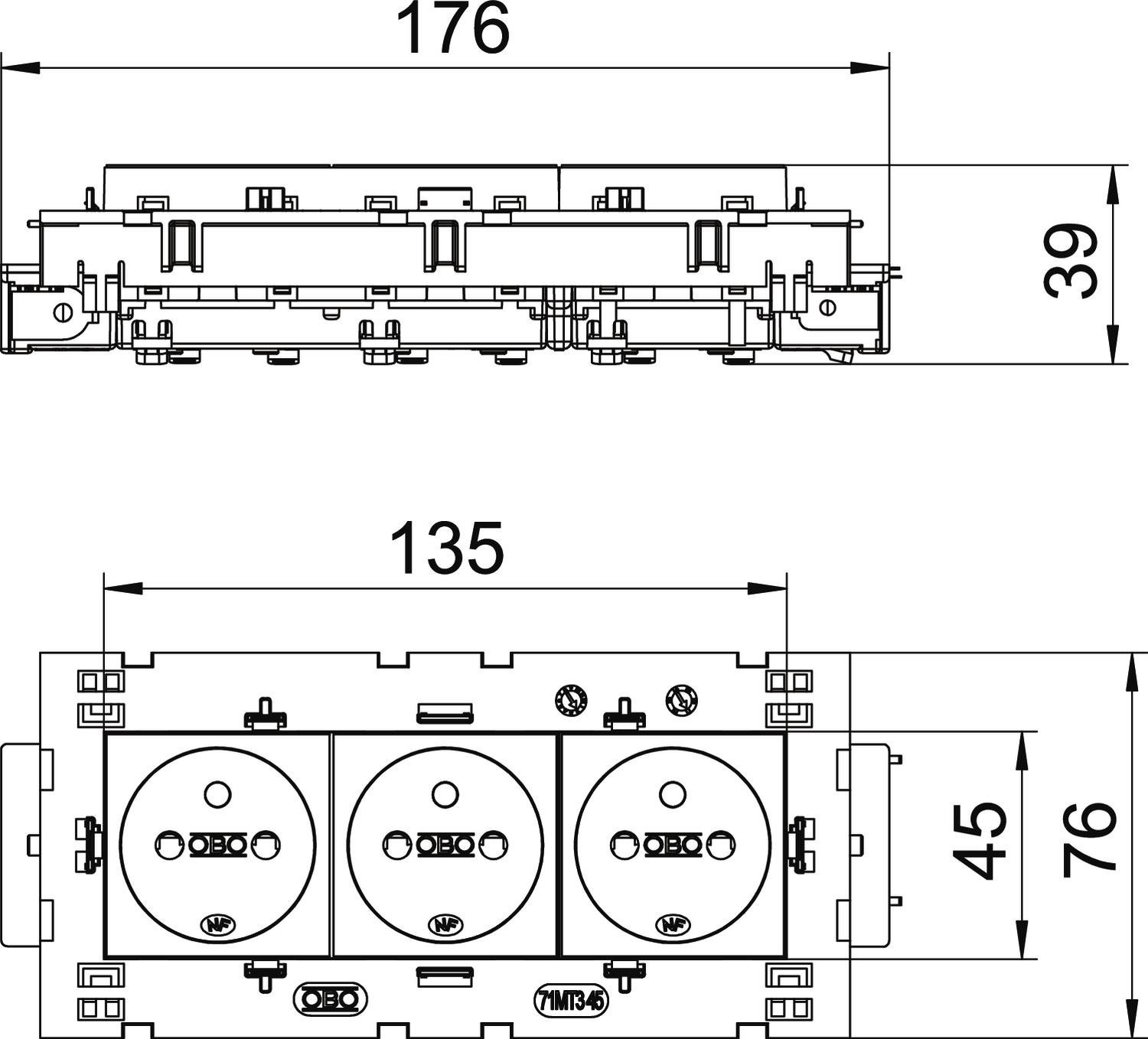 Para a instalação em calhas Rapid 45, calhas de montagem de aparelhos, colunas de distribuição, sistemas de chão e Deskbox.