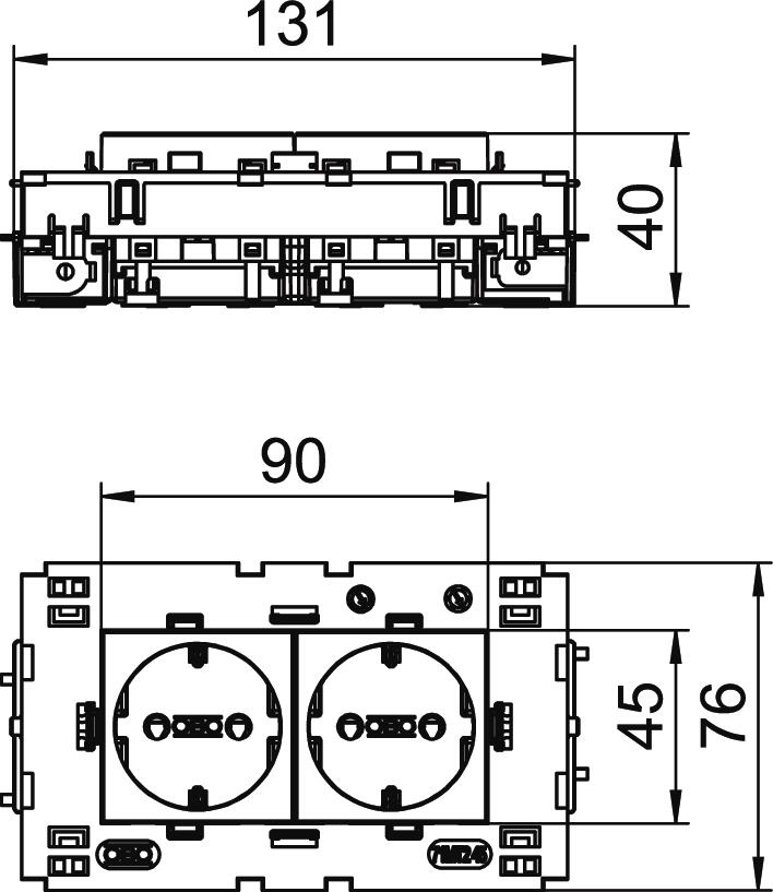Descrição do produtoTomada Schuko com ligação lateral, 2 x 0°, com proteção elevada contra contacto acidental, com ligadores rápidos, 2 polos, 16 A, 250 V~, com bornes de ligação conforme IEC 60884-1, indicada para a montagem em sistemas de calhas técnicas Rapid 80.