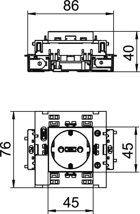 Para a instalação em calhas Rapid 45, calhas de montagem de aparelhos, colunas de instalação, sistemas de chão e Deskboxes.