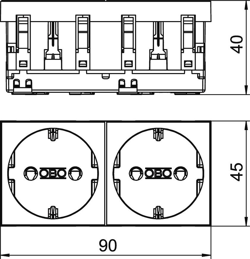 Para a instalação em calhas Rapid 45, calhas de montagem de aparelhos, colunas de instalação, sistemas de chão e Deskboxes.