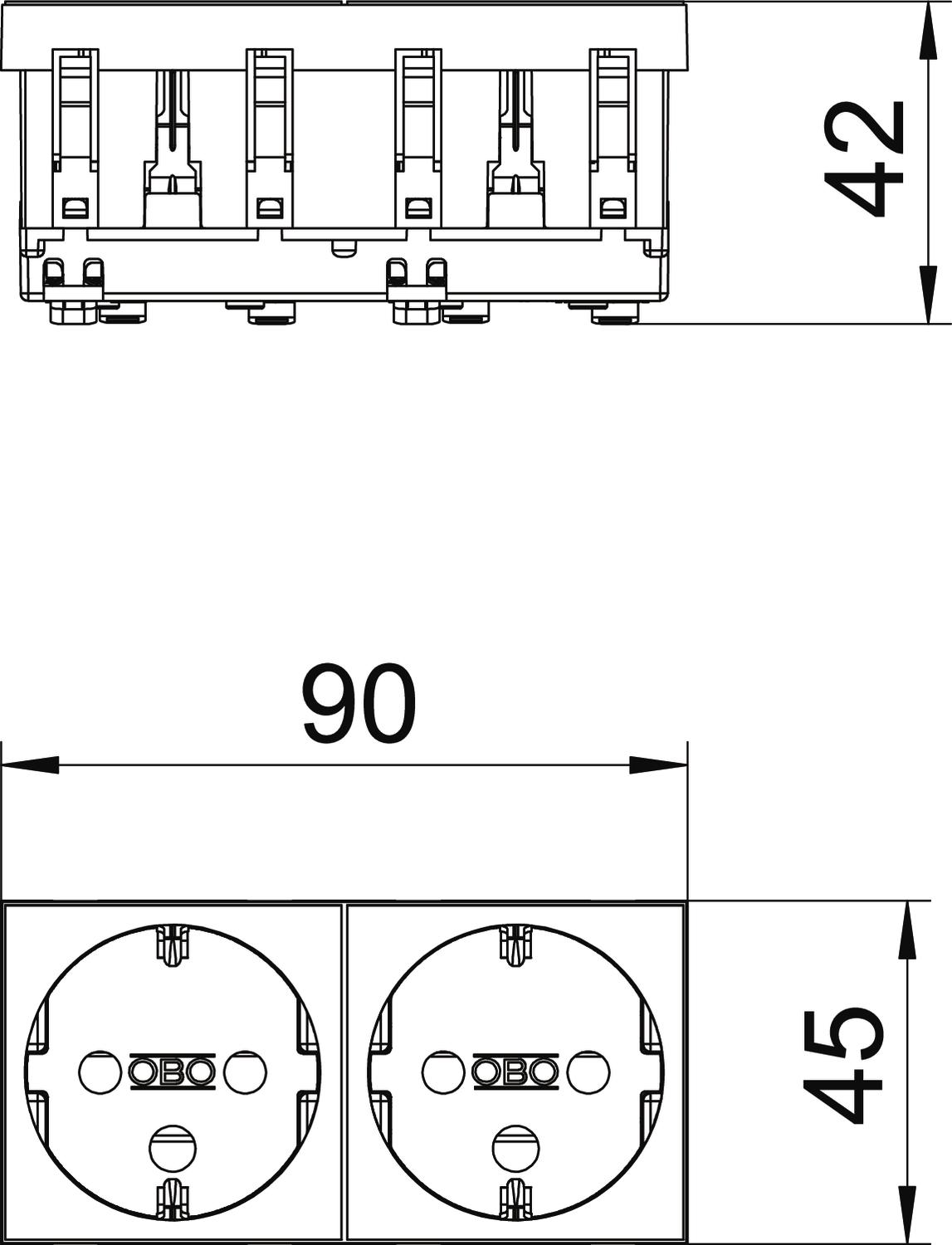 Para a instalação em calhas Rapid 45, calhas de montagem de aparelhos, colunas de instalação, sistemas de chão e Deskboxes.