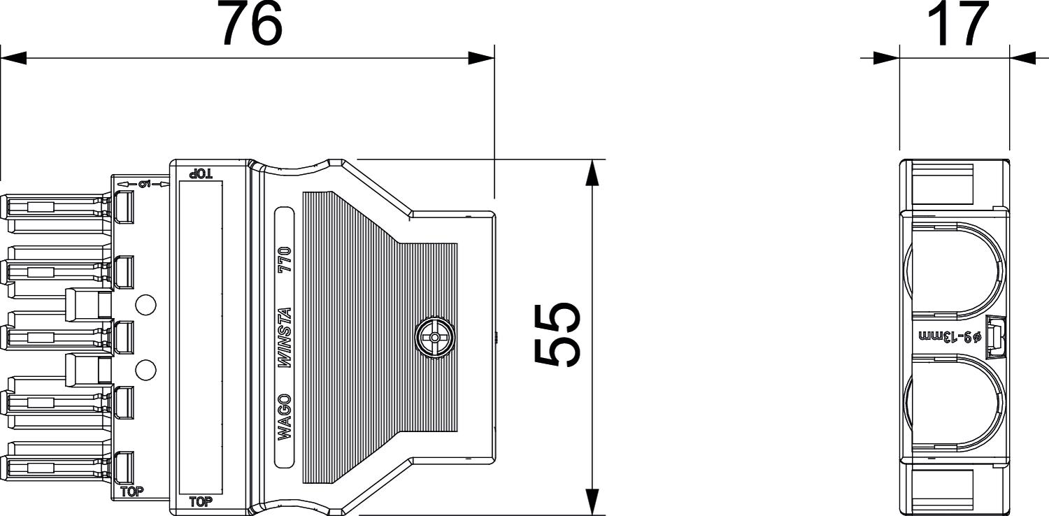 Descrição do produtoTomada 5 polos, tipo WINSTA® MIDI com ligação terminal.