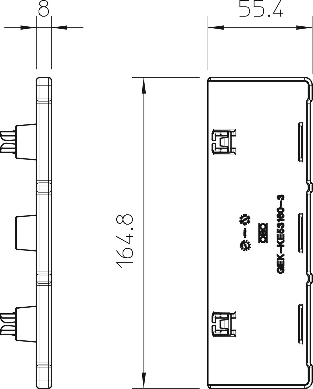Adequado para esquerdo/direito Altura 55,4 mm Comprimento 8 mm Cor branco puro; RAL 9010 Dimensão 53x160mm Gama de temperaturas de aplicação máx. 60 °C Gama de temperaturas de aplicação mín. -15 °C Grau de proteção IP 30 Grau de proteção código IK IK08 Laminação de corte sim Largura 164,8 mm Livre de halogéneos não Material Policloreto de vinilo Medida a 164 mm Medida b 55,4 mm Medida H 160 mm para altura da calha 53 mm Pegada de CO2 (GWP) do berço ao portão 0,1186 kg CO2e / 1 Peça Película protetora não Tipo de fixação encaixável Tratamento anti-bacteriano não Versão simétrico - Todos os tipos