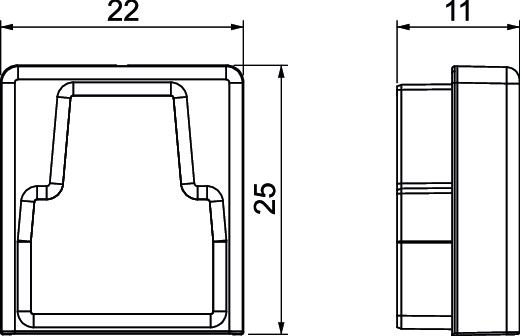 Altura 25 mm Comprimento 11 mm Cor preto; RAL 9011 Dimensão 20x20mm Funktionsgaranti não Grau de proteção IP 30 Grau de proteção código IK IK10 Largura 22 mm Livre de halogéneos sim Material Elastómero termoplástico Pegada de CO2 (GWP) do berço ao portão 0,0119 kg CO2e / 1 Peça Película protetora não Tipo de fixação encaixável Versão esquerdo/direito Versão conector União integrada - Todos os tipos