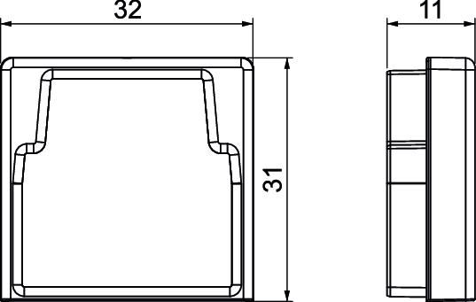 Altura 31 mm Comprimento 11 mm Cor preto; RAL 9011 Dimensão 30x30mm Funktionsgaranti não Grau de proteção IP 30 Grau de proteção código IK IK10 Largura 32 mm Livre de halogéneos sim Material Elastómero termoplástico Pegada de CO2 (GWP) do berço ao portão 0,0142 kg CO2e / 1 Peça Película protetora não Tipo de fixação encaixável Versão esquerdo/direito Versão conector União integrada - Todos os tipos