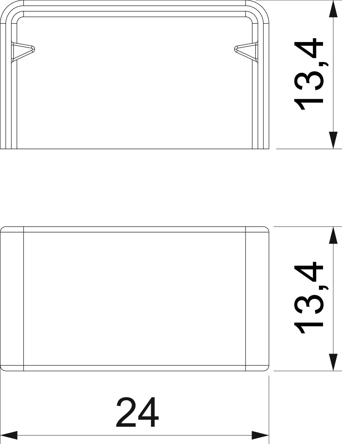 Comprimento 24 mm Cor branco puro; RAL 9010 Dimensão 13x24x13 Gama de temperaturas de aplicação máx. 60 °C Gama de temperaturas de aplicação mín. -5 °C Grau de proteção IP 30 Grau de proteção código IK IK04 Largura 13,4 mm Livre de halogéneos não Material Policarbonato/acrilonitrila-butadieno-estireno Película protetora não Tipo de fixação encaixável Tratamento anti-bacteriano não Versão esquerdo/direito - Todos os tipos