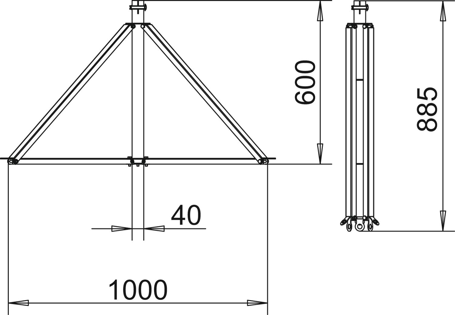 Admissão Haste captora sem parafusos Altura 885 mm Comprimento 600 mm Diâmetro 1000 mm Dimensão 1,25x1,35m Largura 1000 mm Material Alumínio Medida B 1000 mm Medida d mín. 40 mm Medida H 885 mm Medida L 600 mm Pegada de CO2 (GWP) do berço ao portão 18,7716 kg CO2e / 1 Peça Versão Tripé - Todos os tipos