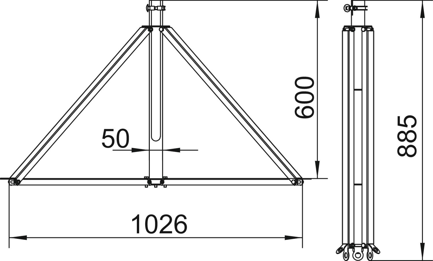 Admissão Haste captora sem parafusos Altura 885 mm Comprimento 600 mm Diâmetro 1026 mm Dimensão 1,3x1,4m Largura 1026 mm Material Aço inoxidável, livre de ferrugem 1.4301 Medida B 1026 mm Medida d mín. 50 mm Medida H 885 mm Medida L 600 mm Pegada de CO2 (GWP) do berço ao portão 4,1733 kg CO2e / 1 Peça Versão Tripé - Todos os tipos