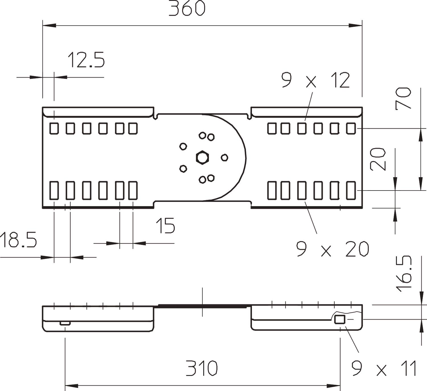Descrição do produtoUnião articulada para a ligação de caminhos de cabos tipo escada com aba de 110 mm e perfuração contínua. Ângulo ajustável verticalmente.