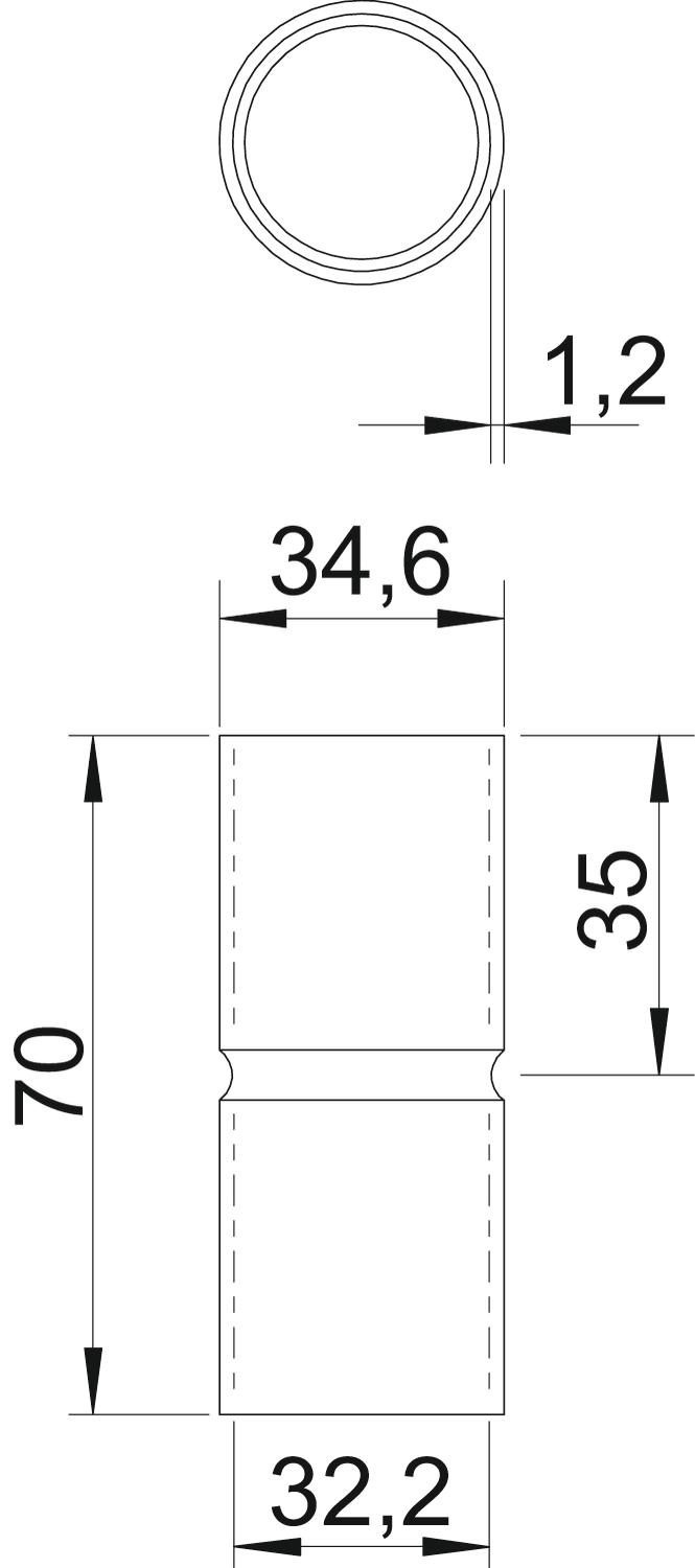 Com escotilha de inspeção e tampa não Comprimento 70 mm Dimensão Ø32mm Duas peças não Gama de temperaturas de aplicação máx. 250 °C Gama de temperaturas de aplicação mín. -45 °C Livre de halogéneos sim Material Alumínio Medida d 32,2 mm Medida D 34,6 mm Medida l 35 mm Medida L 70 mm Medida t 1,2 mm para diâmetro de tubo 32 mm Superfície escovada não Superfície polida não Tamanho 32 Versão Encaixe - Todos os tipos